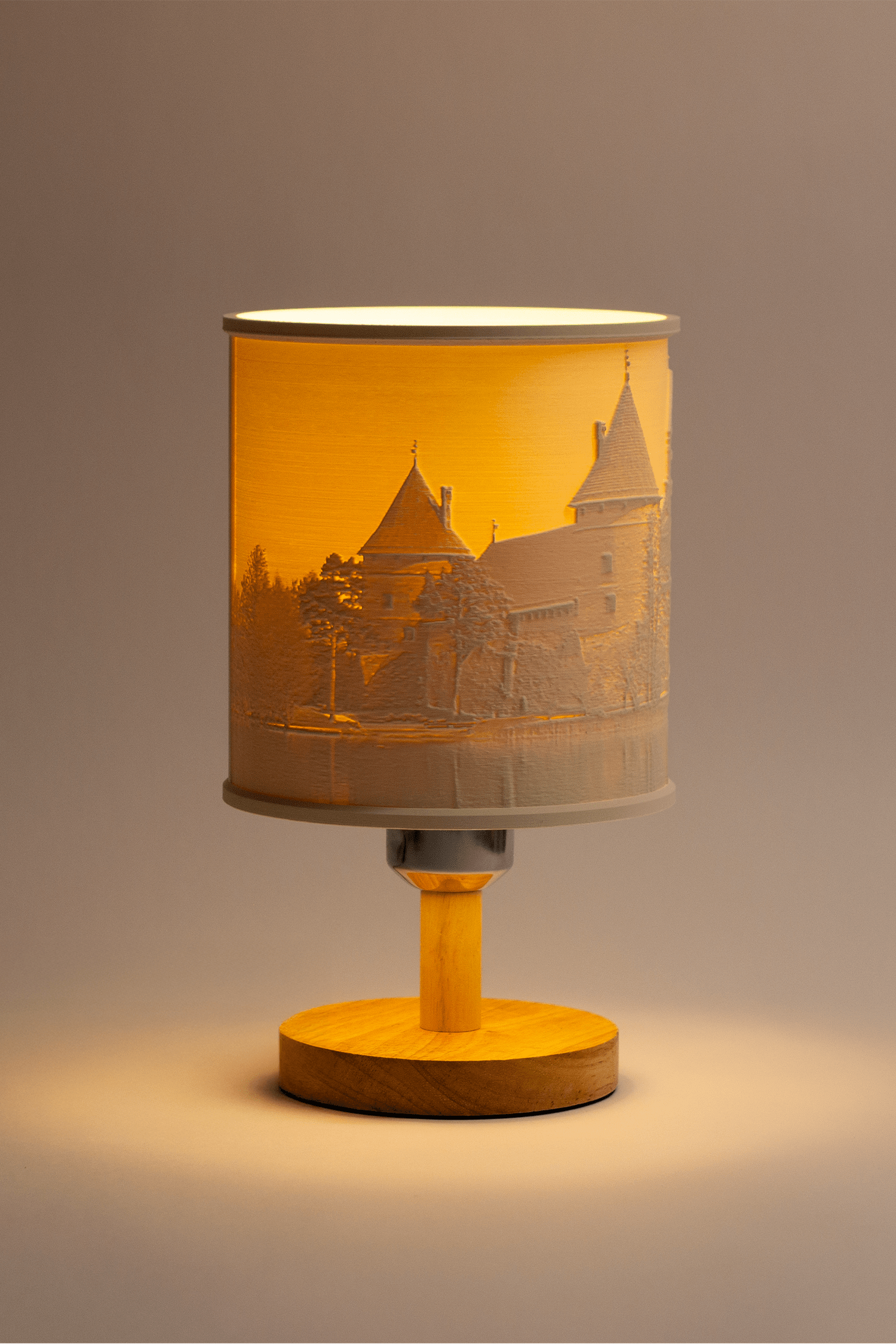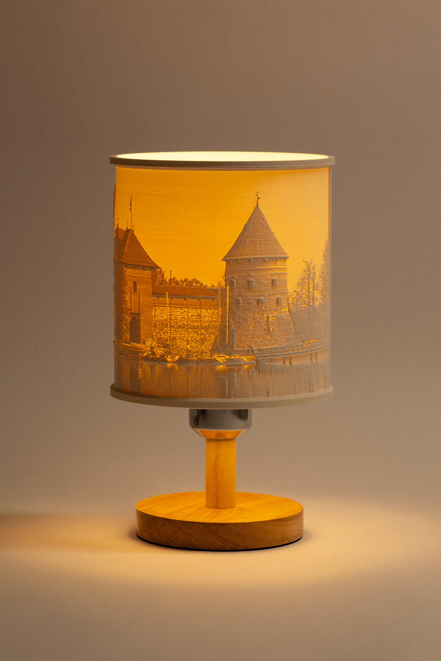 Įjungus šį šviestuvą, Trakų pilis atgyja švelnioje šviesoje – lyg tylus prisiminimas apie ramius vakarus ant ežero kranto. Reljefinis atvaizdas šiltai išryškėja ir įneša į namus jaukios nostalgijos bei lietuviškos istorijos dvelksmą.